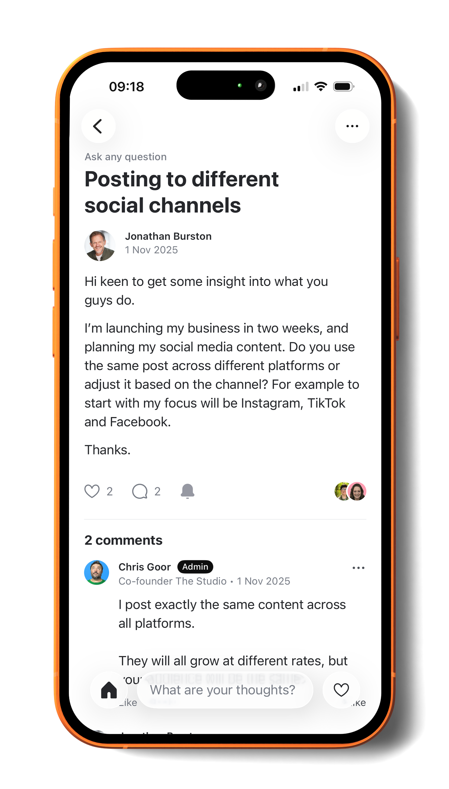 The Studio is not a course. It’s a thriving community with the personal feedback, resources and inspiration to keep you posting long-term.